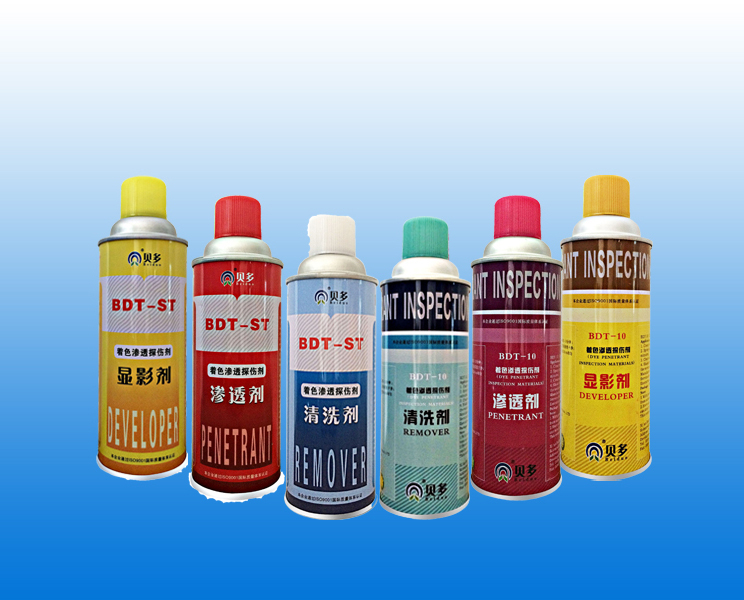 著色滲透探傷劑用于非鐵磁性材料表面缺陷檢測(cè),產(chǎn)品顯像迅速,清晰,線條細(xì),不暈染。廣泛應(yīng)用于化工、造船、發(fā)電、航空、機(jī)械、汽車、冶金、石油、鐵路、受壓容器等部門的探傷檢測(cè)。